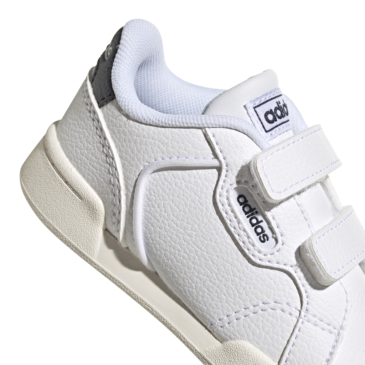 Menos es más. Esta zapatilla presenta un diseño minimalista y elegante inspirado en el clásico estilo del tenis. Cuenta con una parte superior de piel sintética suave, las 3 bandas perforadas y un talón con tirador.Adidas Roguera