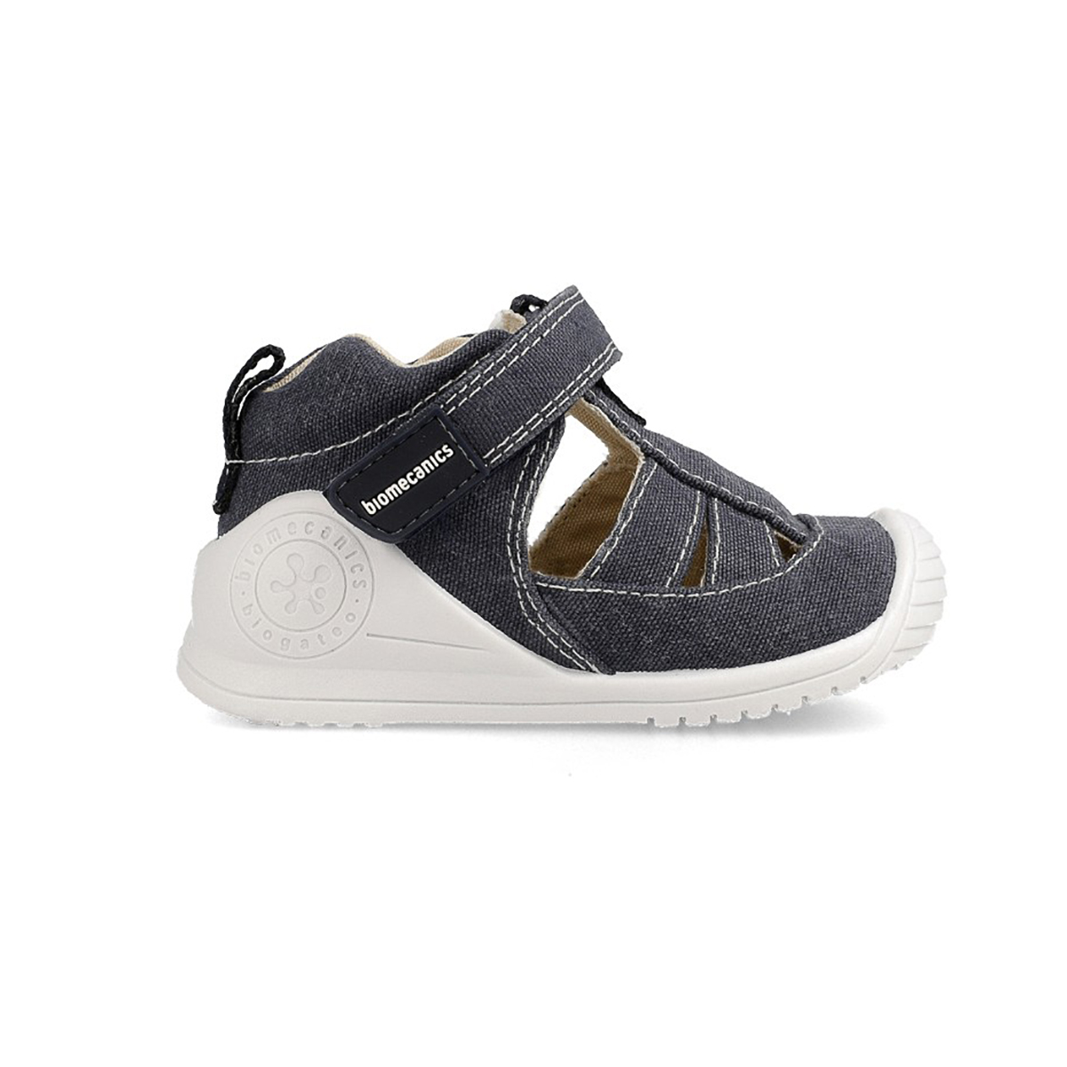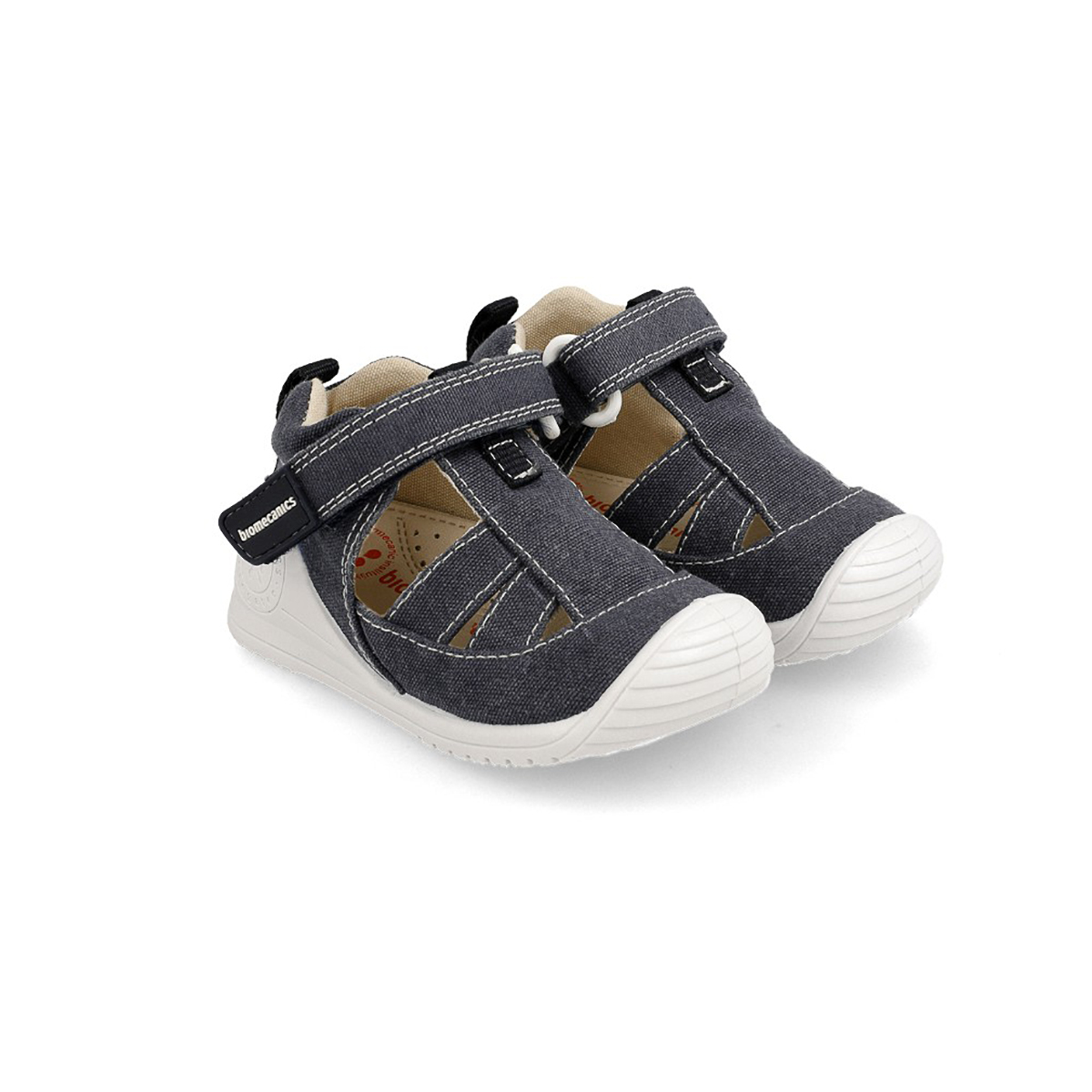 Cangrejeras fabricadas en lona 100% algodón con suela blanca. Un diseño confortable con el que nuestros niños caminarán estables y seguros en los días más calurosos.