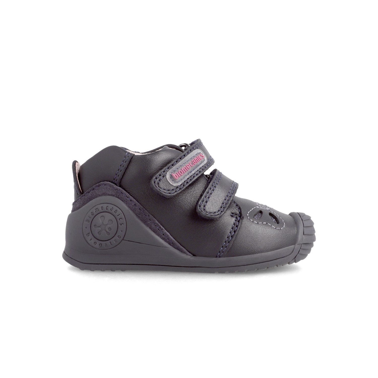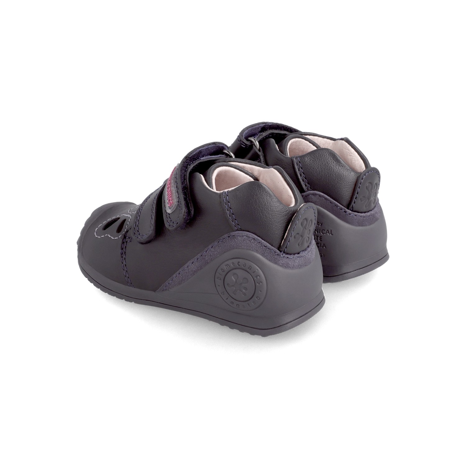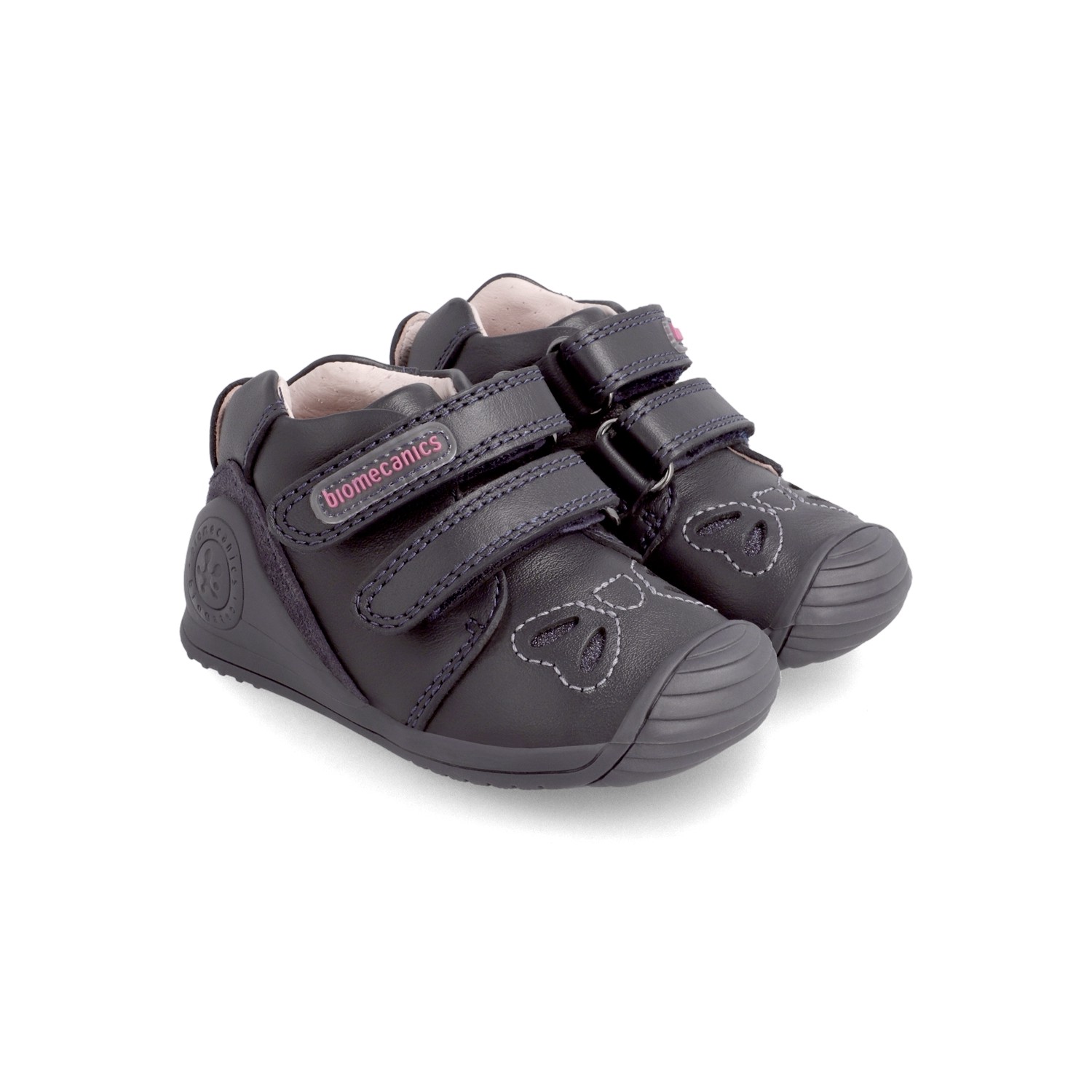 Botines de niña fabricados en piel ideales para acomañar los primeros pasos respetando el desarrollo natural del pie. Un diseño sencillo con lazo bordado en puntera que podrás combinar en multitud de ocasiones esta temporada.