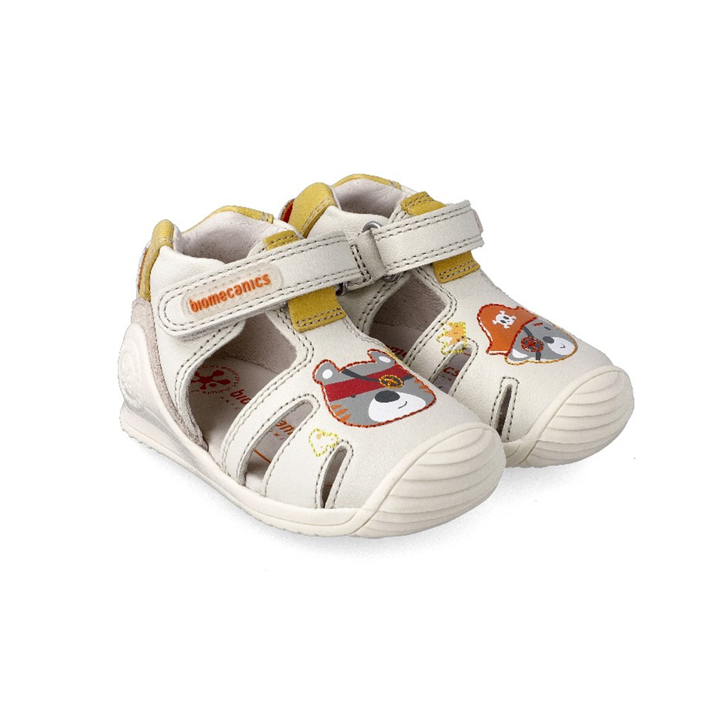 Divertidas sandalias de piel para los primeros pasos de nuestros niños. Con nuestra Línea Biogateo avanzarán más seguros gracias a la flexibilidad de su suela y su puntera reforzada.BIOMECANICS