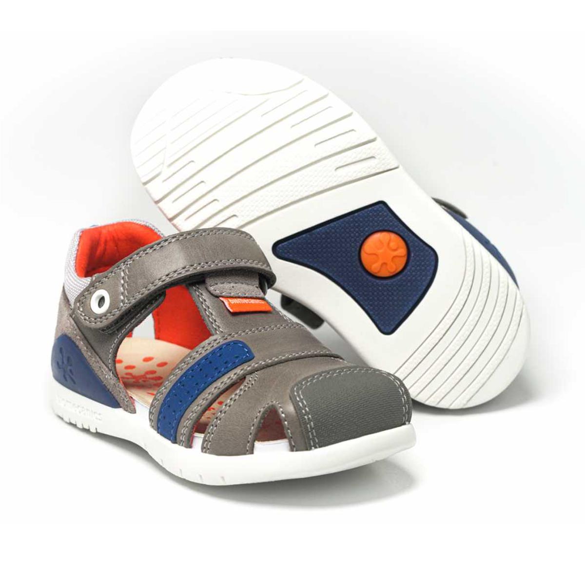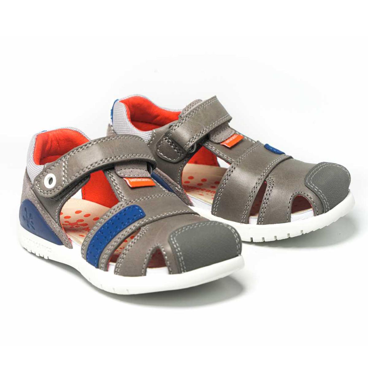 Divertidas sandalias de piel para los primeros pasos de nuestros niños. Con nuestra Línea Biogateo avanzarán más seguros gracias a la flexibilidad de su suela y su puntera reforzada.BIOMECANICS
