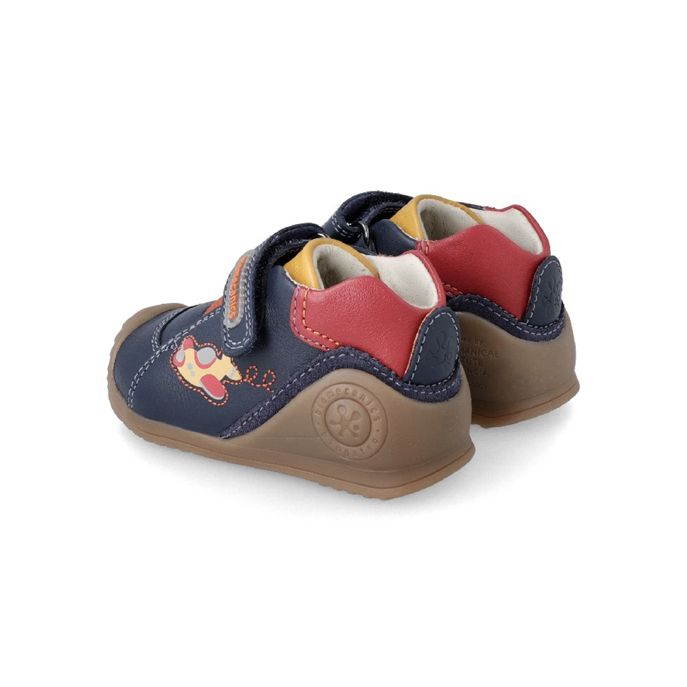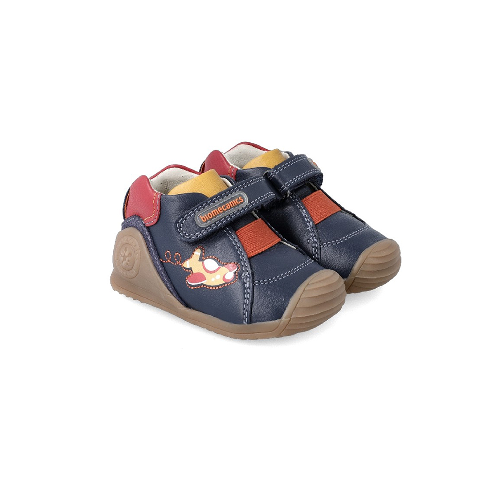 Botines de piel para los primeros pasos de nuestros bebés. Un diseño divertido con adorno lateral, cierre de velcro ajustable y tira elástica sobre el empeine.