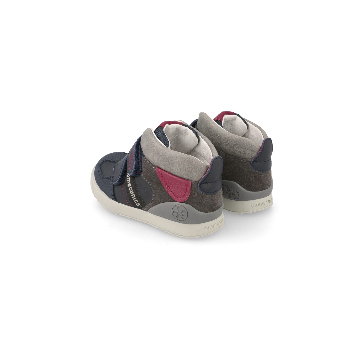 Botines de estilo deportivo ideales para la rutina diaria de los más pequeños de la casa. Fabricados en piel con detalles de colores que contrastan y dan el toque diferente a este calzado infantil.