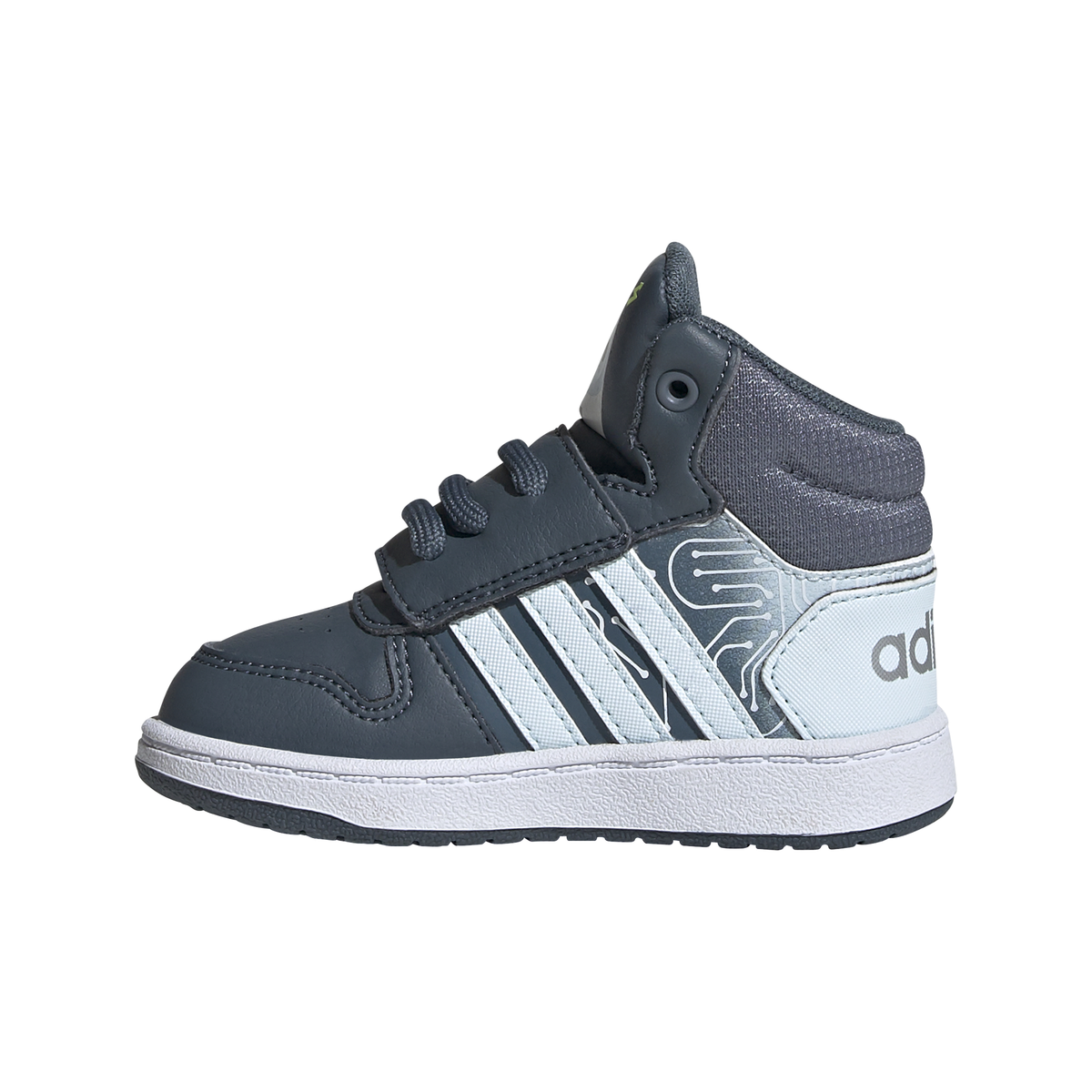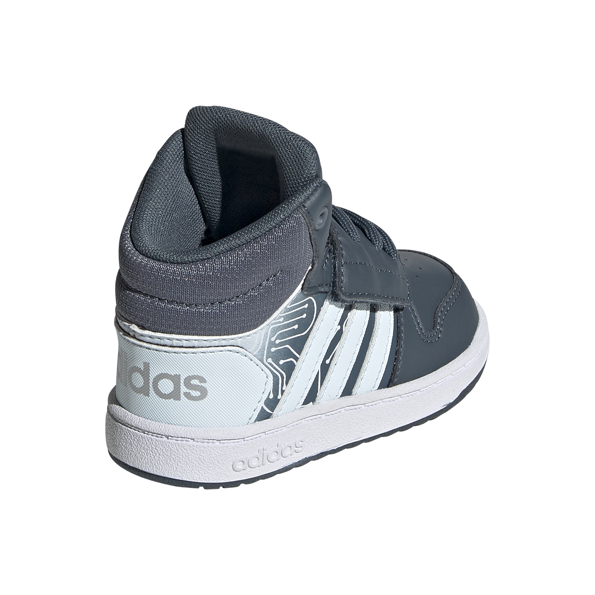 Parte superior de piel sintética para una mayor ligereza y resistencia al desgaste. Cómodo cierre con tiras de velcro.Suela de goma Non Marking muy flexible que ofrece mayor agarre y resistencia al desgaste. Adidas HOOPS 2.0 ROBOT