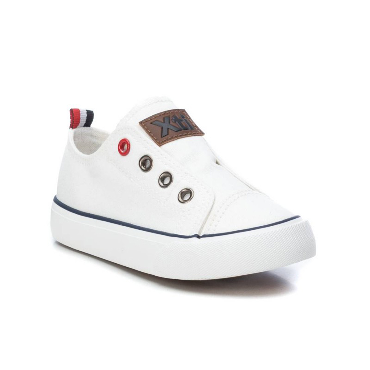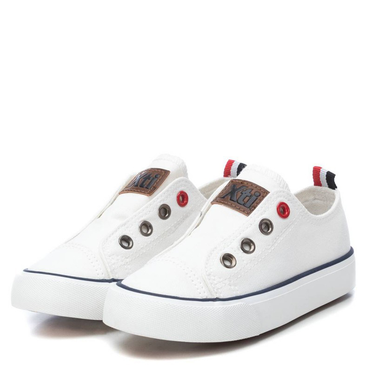 Zapatilla de lona de niño de la marca Xti. Zapatilla con elasticos para una mayor ajuste. Suela blanca de 2 cm. Una zapatilla ideal para los niños por su facilidad a la hora de ponersela y su ligereza. Suela de goma flexible y antideslizante.