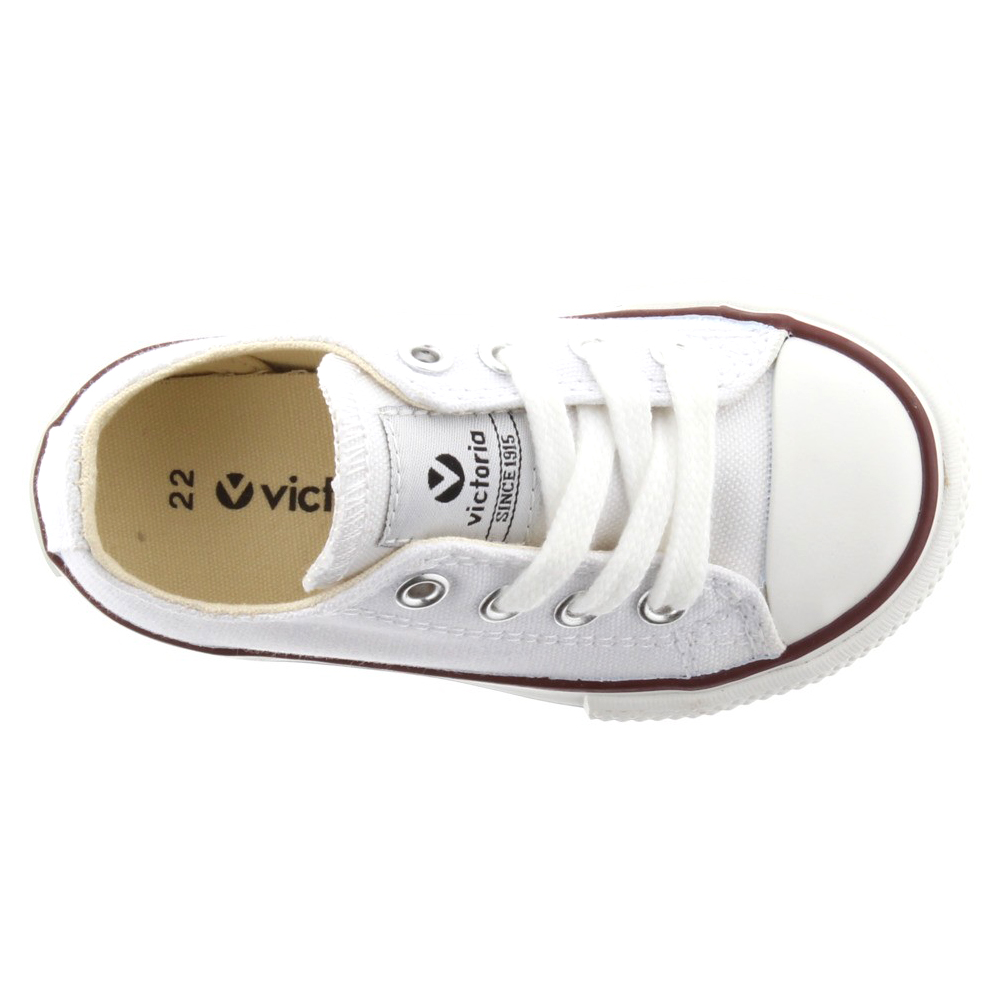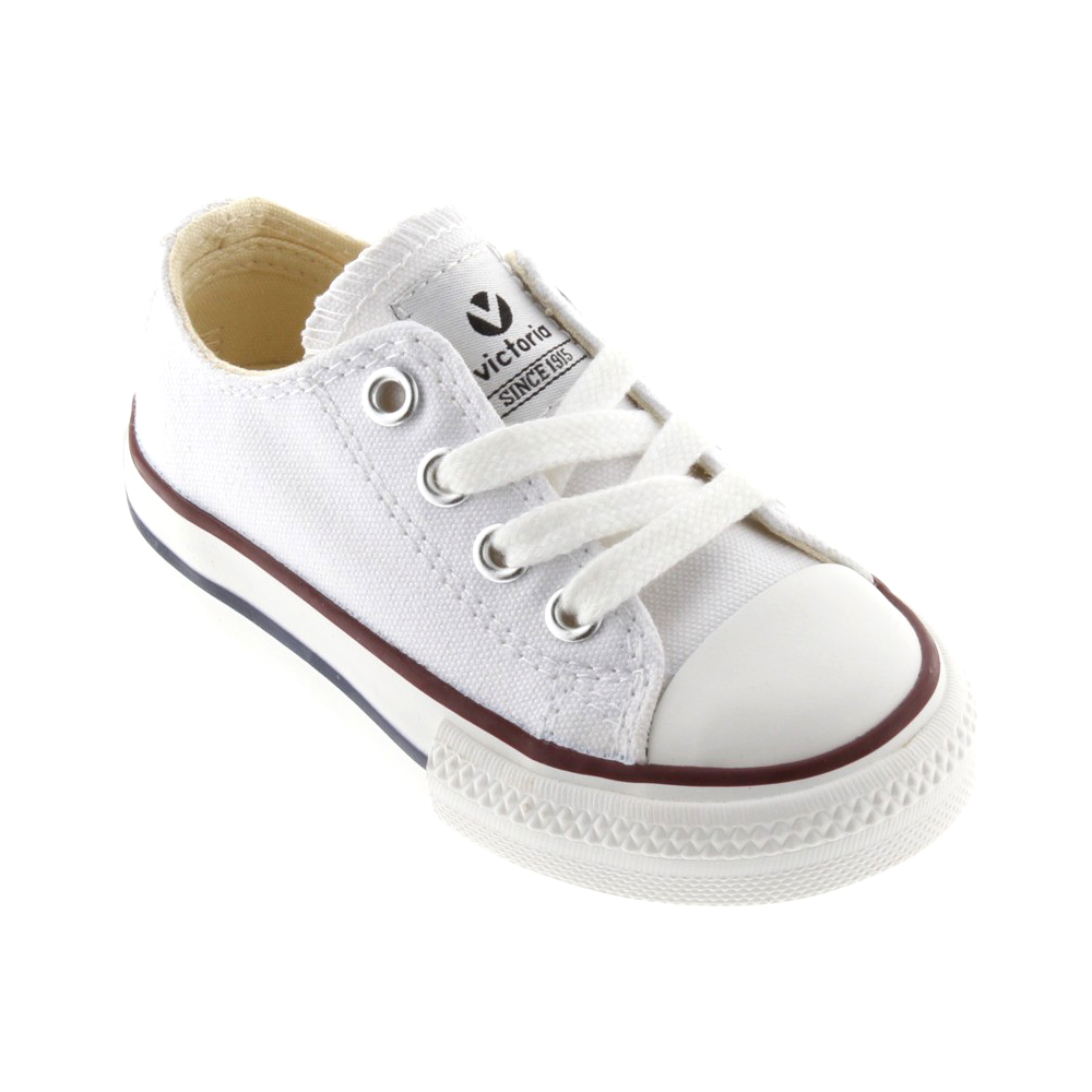 Zapatilla Victoria estilo basket con puntera de goma y cordones, elaborada en lona de algodón 100%.Exterior y forro de algodón 100% Suela de Goma