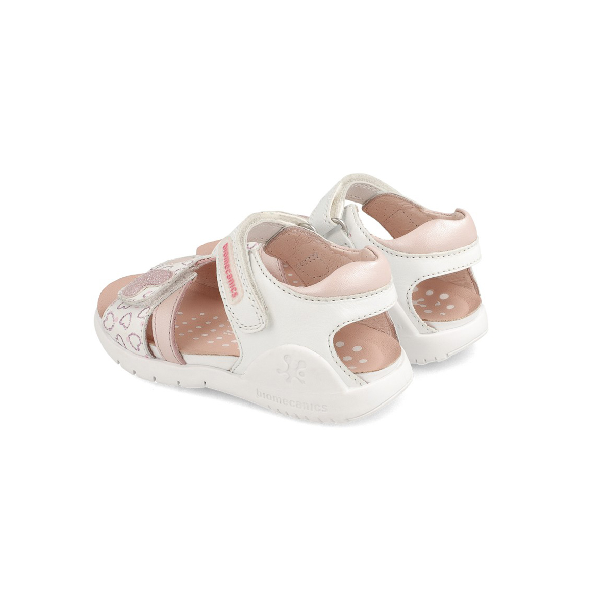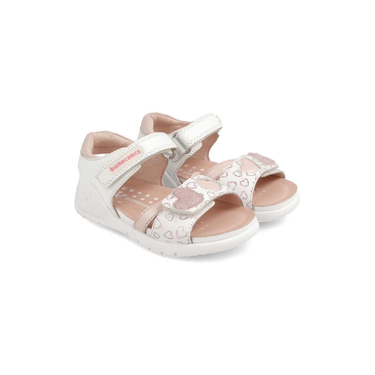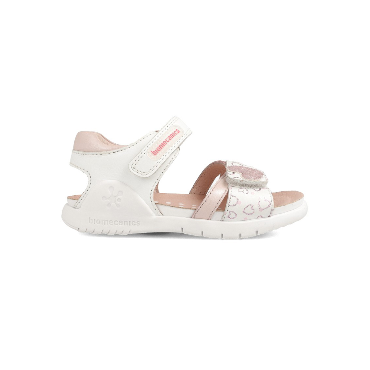 Sandalia fabricada en piel lisa y estampada con adorno de corazones en la zona delantera. Creadas para el día a día por su resistencia y por ser capaces de ofrecer una gran libertad de movimiento.