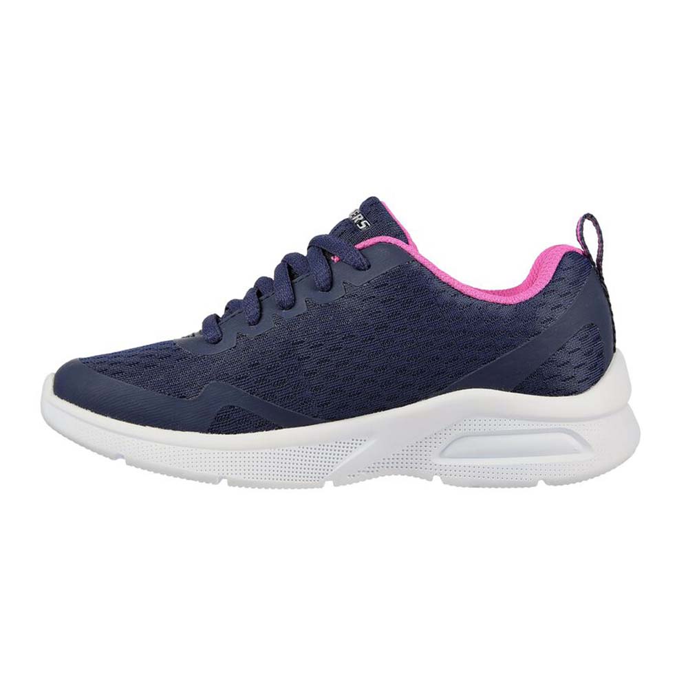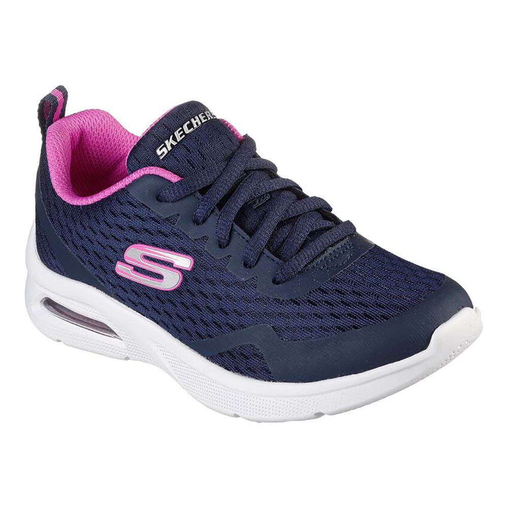 El estilo deportivo se une a la mejor comodidad con amortiguación en la Skechers Microspec Max – Electric Jumps. Parte superior de malla deportiva transpirable y tejido sintético en una zapatilla con cordones y una media suela con cámara de aire visible.