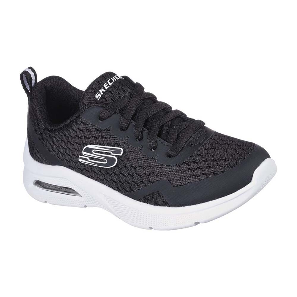 Disfruta de la comodidad definitiva con la Skechers Microspec Max. Parte superior de malla deportiva transpirable y tejido sintético en una zapatilla con cordones y una media suela con cámara de aire visible.
